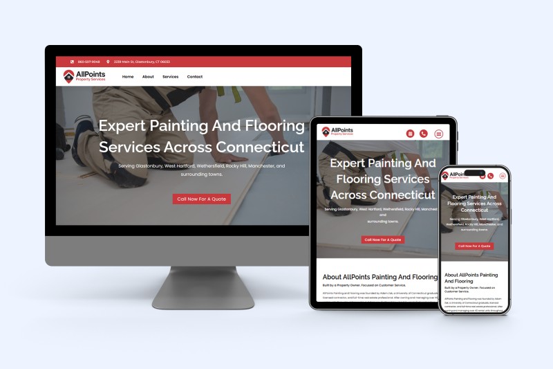 All Points Property Services is a flooring and painting services website built for a Hartford, USA–based customer. The site features a clean, minimalistic, and professional layout, designed to build trust and drive high conversions through a streamlined user experience.